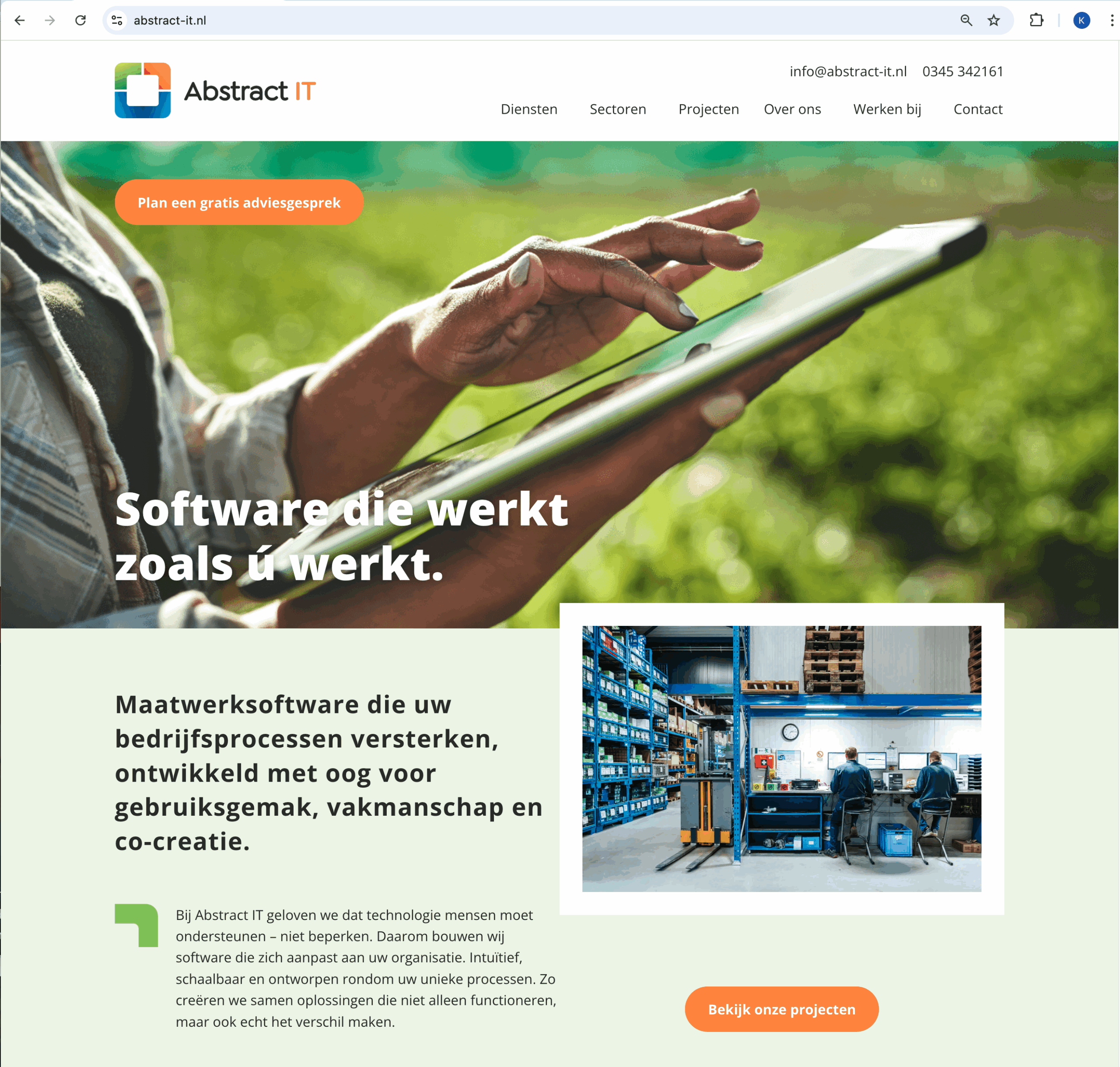 Spijker en Co heeft de website ontwikkeld en verzorgt de online marketing voor Abstract IT.